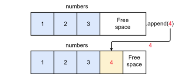 - append는 아래의 그림과 같이 배열의 끝에 요소를 추가해주는 연산이다.